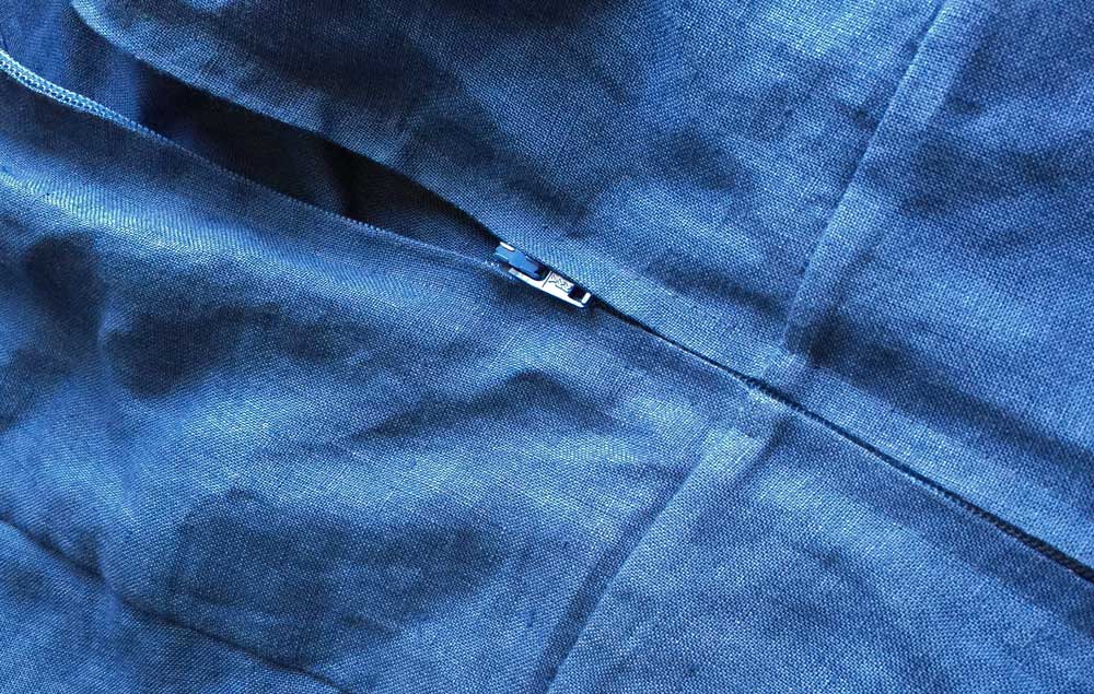 2. Sometimes it’s faster to set a zipper in by hand, especially when it’s a centered zipper going up the back of a dress. In prominent spots like center-back, you don’t want uneven lines of stitching. They’re really noticeable. When I put in a centered zipper by machine, I almost always need to rip out a section of stitches, whether they didn’t catch the seam allowance, or they got too close to the teeth, and resew it. And then you’re trying to line up the new stitches exactly with the first line of stitches without it being obvious. Instead, I baste the zipper in place and hand-sew it with the prick stitch. It’s a type of back stitch that’s tiny on the outside so you don’t see it, but strong enough for the strain a zipper gets. Hand sewing a zipper saves time because of the control it gives you. The sewing takes longer, but there is no seam ripping and resewing.