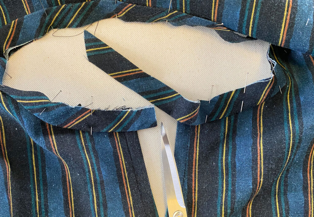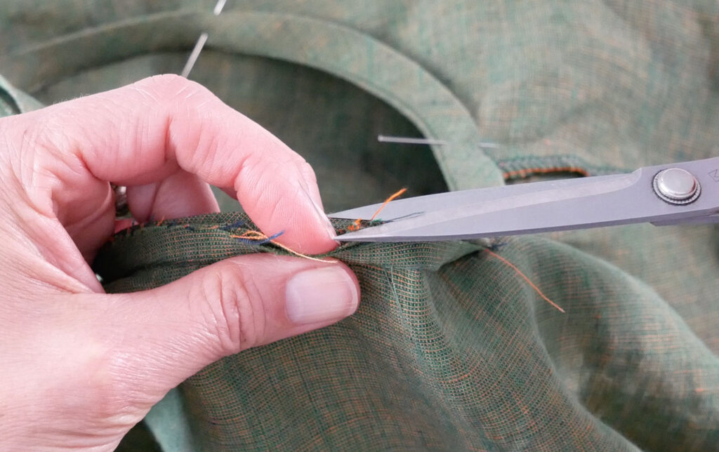 After sewing the binding to the neckline, you may need to clip into the tighter areas of the curves. Clip the binding seam allowance separately from the neckline seam allowance so the clips aren’t stacked on top of each other.