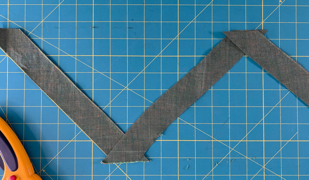 If it’s possible to place other pieces of the pattern around the strip, great. But when you can’t, or when you don’t have that much fabric, or if you don’t want to have big, oddly shaped scraps left over, you can cut multiple, shorter, bias strips and piece them together.