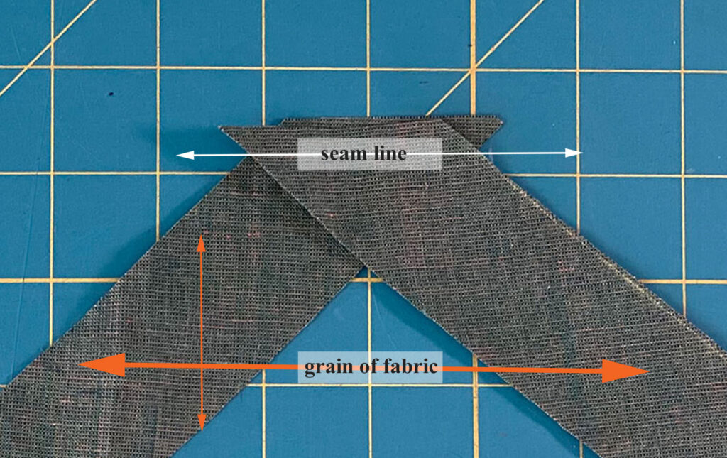 - The seams will be diagonal on the finished strip (this distributes the bulk of the seam allowances along the strip when it’s been folded)