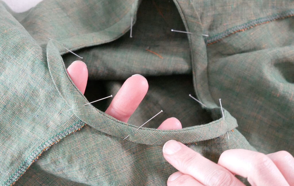 The neck opening of a shirt can be finished with a collar stand, a collar, a facing, a lining, or a bias binding. While the collars and collar stands are for style, the facings, linings, and bias strips are for function.